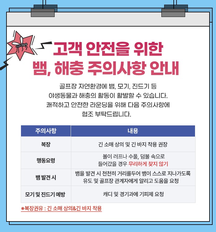 고객 안전을 위한 뱀, 해충 주의사항 안내
